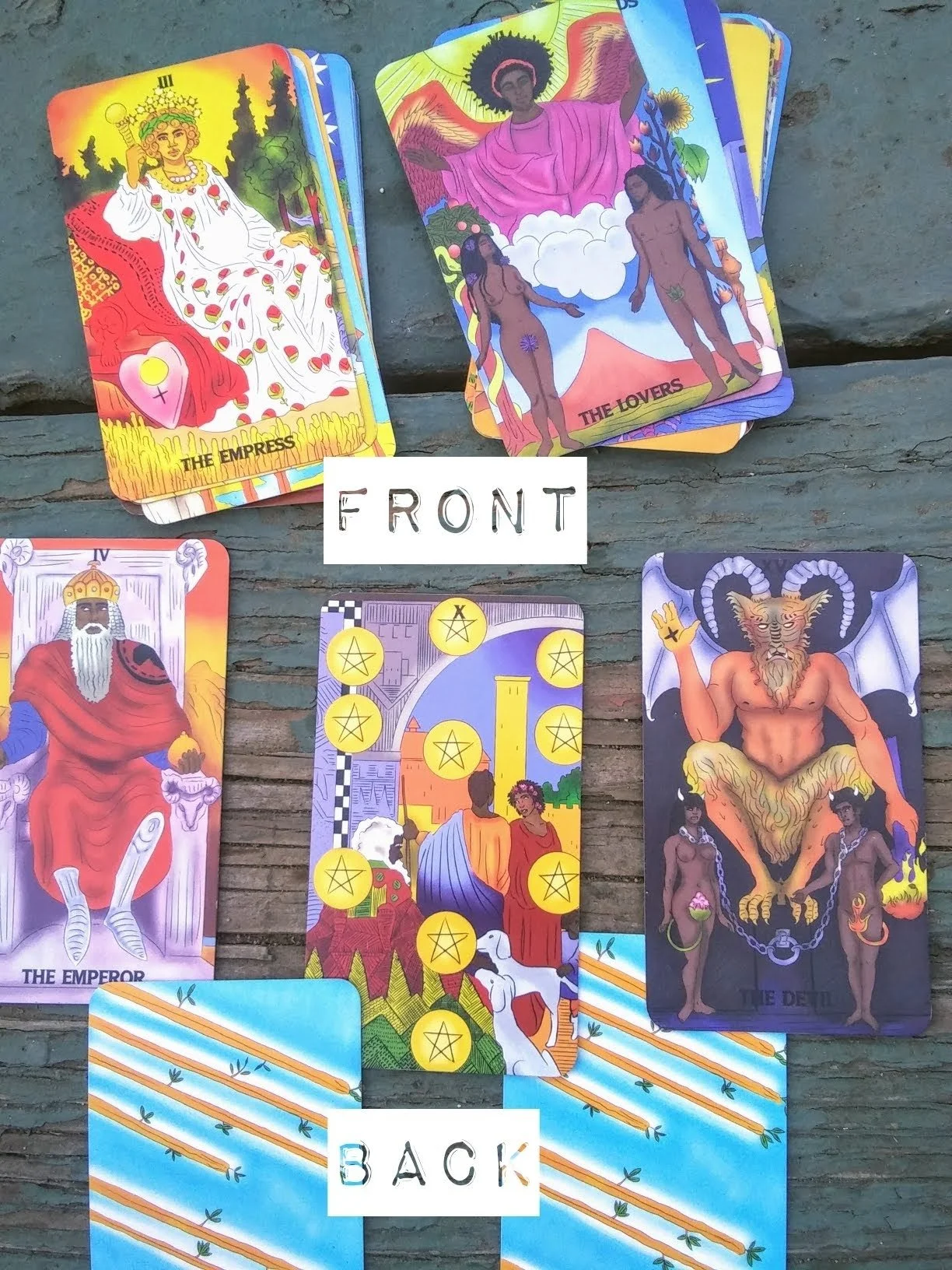 Tarots cards are divination tools that have been used in the Black community for centuries. They have become increasingly popular over the past few years. However, most of the decks that are widely popularized are made neither for nor by Black people. Luckily, there are a plethora of decks made for Black people that are available. They feature a diverse range of cultures within the Black community, from New Orleans to Brazil, to West Africa. Stunning visuals accompanied by ebony skin and vibrant colors are just a few of the prime elements that make these decks so special and unique.